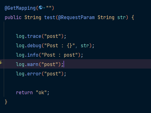 lombok의 @Slf4j을 사용하여 편히 쓸 수 있다.